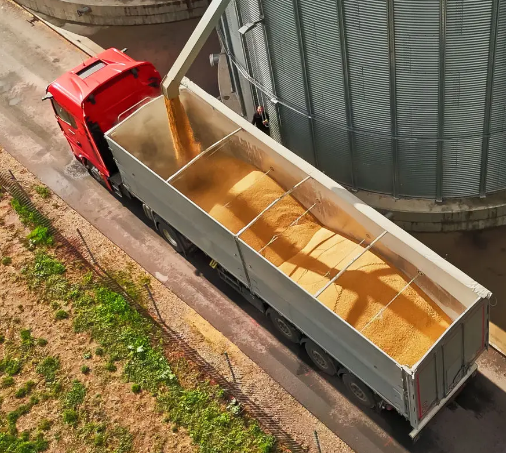 Nos bennes céréalières ou grands volumes permettent le transport de divers produits en vrac dans le secteur du BTP (graviers, cailloux, agrégats en vrac, etc.) et le secteur agricole (céréales, nutrition animale, etc.). Grâce à notre accréditation Qualimat, nous garantissons une sécurité optimale pour le transport de ces matières.